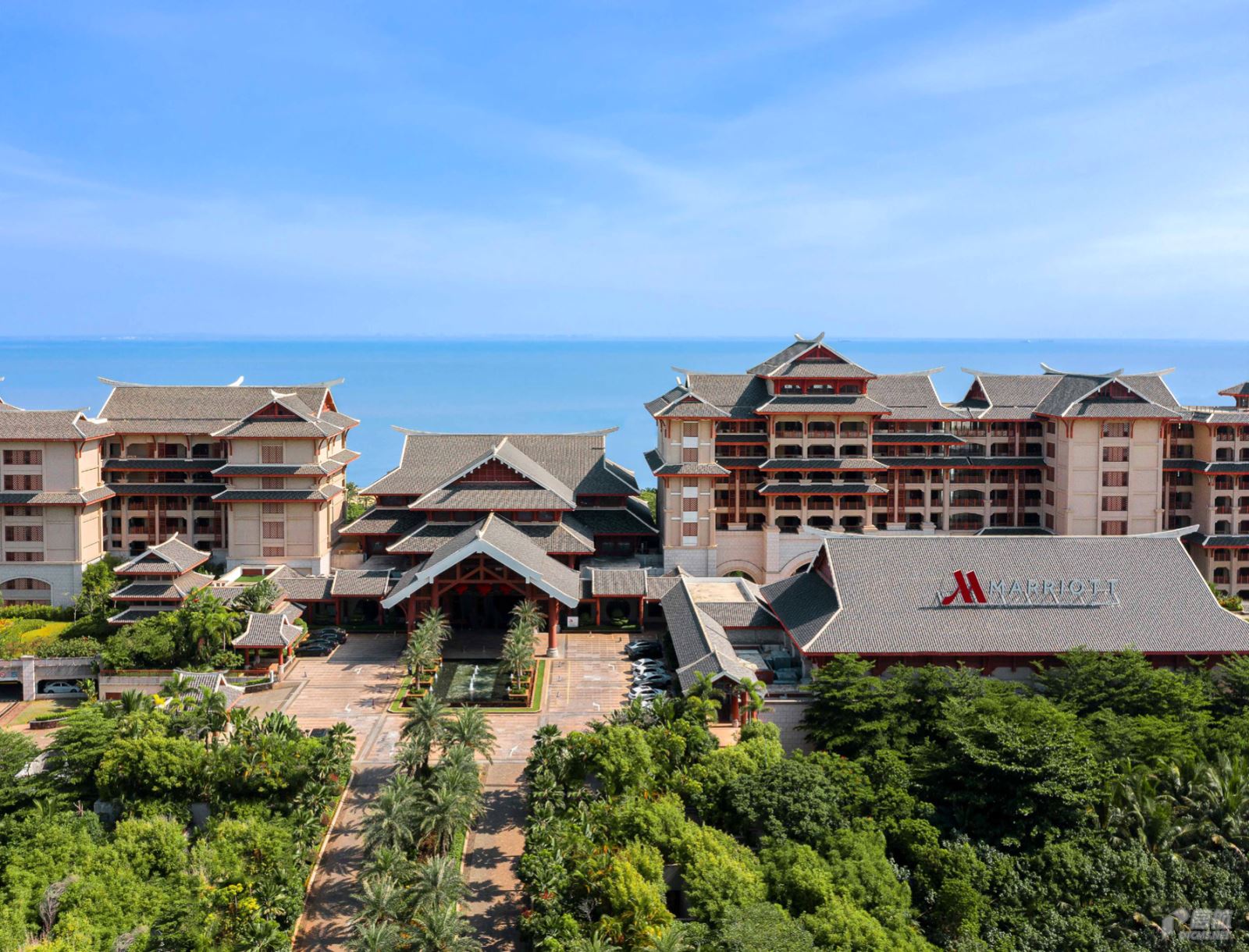 海口万豪酒店坐落于海南国际会展中心旁,作为海口市首家万豪品牌酒店,其建筑设计灵感汲取自当地的自然风光与文化特色,完美融合了现代奢华与地域风情。酒店共设有 295 间客房,提供 11 种房型选择,面积从 58 ㎡至 420m 不等,其中全海景超大客房为宾客提供了无与伦比的视野,可尽情欣赏海天一色的迷人风景。除了卓越的住宿体验,海口万豪酒店还配备了超过 4000 ㎡的会议及接待空间,其中包括层高 9m、面积达 845 ㎡的室内无柱式宴会大厅,是目前海口层高最高的宴会设施之一,适合举办大型会议或高端宴会。此外,酒店还设有两间总面积为 240m 的多功能会议室,可根据需求灵活分割为三个独立空间,并配备先进的会议通讯系统和无线网络,满足各类商务活动的需求。酒店内设施能够满足不同客群的个性化需求:针对家庭旅客,酒店特别设置了儿童俱乐部,内含适合不同年龄段儿童的玩具,让孩子在安全的环境中尽情玩乐,同时让家长得以放松身心。餐饮方面,酒店拥有 2 间餐厅及 2 间酒吧,提供多样化的国际化美食体验,无论是精致的本地佳肴还是地道的异国风味,都能在此一一品尝。酒店的休闲设施丰富多样。颐尊会水疗中心环境宁静雅致,提供奢华的身体护理与肌肤保养服务,帮助宾客舒缓压力、恢复活力。24 小时开放的健身房让热爱运动的客人随时保持健康状态;而 6 个源自地下 800m 深层的天然温泉水设施,则为宾客打造了一个放松身心的理想场所。此外,酒店还设有 928 ㎡的成人泳池、236 ㎡的儿童泳池以及 923 ㎡的户外生态游泳池,充分满足不同年龄层宾客的需求。超大面积的户外草坪可容纳近 800 位宾客,是举办户外活动或私人聚会的绝佳选择。